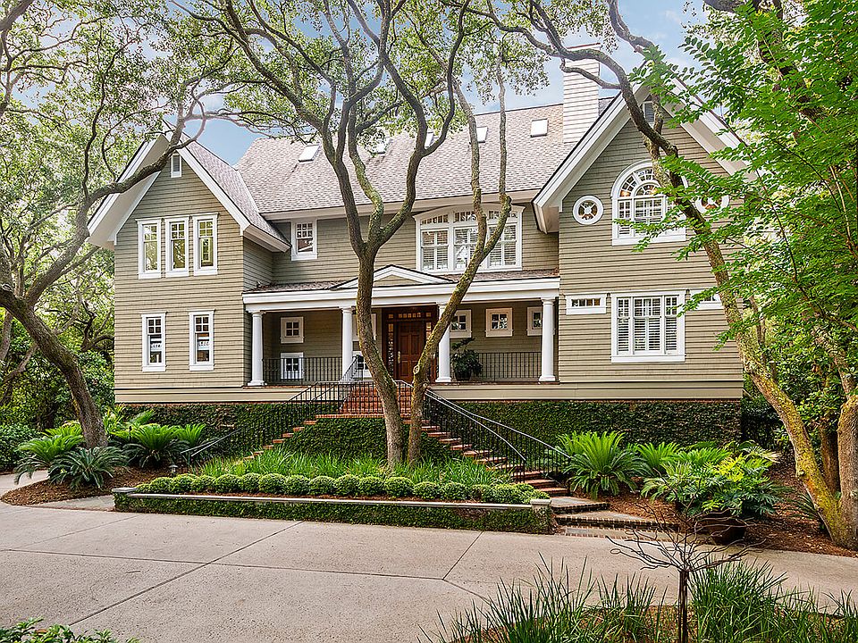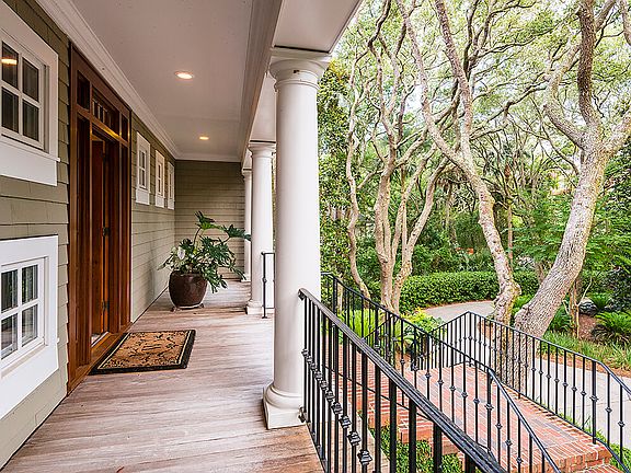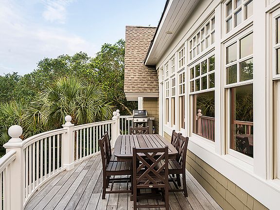 The spacious, impeccably maintained home at 102 Surfsong Road enjoys a location on boardwalk no. 30 leading directly onto Kiawah's pristine beach and views of the blue expanse of the Atlantic Ocean. Designed by respected Kiawah Island architect Mitch Laplante and constructed with care by Bennett Hofford Construction Company, this home is rich with curb appeal and exterior details including shake siding, a privet-lined welcoming-arms staircase in brick, professional landscaping highlighting trees and plants native to Kiawah, a wide drive with ample extra parking space leading to a side-entry garage, and wide, curving porches overlooking the treetops and water views to the rear. Inside, coastal sunlight spills through rows of transomed windows reaching to the ceiling, and rich pine hardwood flooring extends throughout the living areas and master bedroom. The light-filled great room on the top level, placed to take advantage of the ocean views, is open and ideal for both entertaining and intimate gatherings with family. The living room easily accommodates two large sitting areas and is anchored by a gas fireplace with marble surround; a glass door leads to the wide rear sundeck with treetop views of the Atlantic. The adjacent dining area also enjoys direct access to the balcony, and will easily seat eight or more for dinner. The open kitchen is a showpiece with its white-beamed vaulted ceiling and arched window wall. The countertops are granite, and the appliances include a Kitchen Aid® bottom-freezer refrigerator and Bosch® dishwasher. A wide center island with a curving breakfast bar accommodates four for conversation with the home chef and midnight snacks alike, and an adjacent breakfast nook is filled with tree-dappled sunlight from another wall of windows. A windowed butler's pantry with vaulted ceiling is just around the corner and features a coffee bar, Kitchen Aid wine cooler, and ample extra cabinetry. The master suite also dazzles with its dramatically vaulted ceilings with white beams. In the bedroom an arched window flanked by plantation-shuttered sidelights overlooks the views, and in the sunny bath an arched sunburst window above the soaking tub delights the eye. Appointed with marble flooring, a large walk-in shower, and curved-front his-and-hers vanities, it invites leisurely mornings and evenings. A large, window-lined guest room reminiscent of a sunroom enjoys its own full bath with his-and-hers sinks. Additional bedrooms are spacious and bright as well, with one featuring skylights and private access to the top-floor balcony. A second master suite offers his-and-hers vanities and a soaking tub beneath plantation-shuttered windows. An additional sitting area with a curved window wall leads to the rear covered porch perfect for al fresco dining or simply whiling away the summer days with a cold drink in hand. Additional features of this pristine home include an elevator to all floors, impact-rated windows, irrigation system, and proximity to hole no. 14 of the Jack Nicklaus-designed Turtle Point golf course. A Kiawah Island Club Golf Membership is available with the purchase of this property.