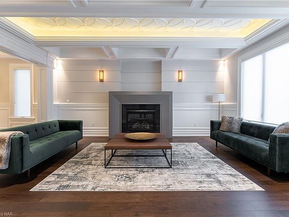 Welcome to 102 Tanbark Road in beautiful St. David's of Niagara-on-the-Lake. This sleek and spectacular custom masterpiece is truly one of a kind! Surrounded by the escarpment, wineries, spas, great schools, parks and golf courses, this home is situated in an executive, newly established neighbourhood and is an entertainers dream! This exquisite 5305 square foot 2-storey home has 7,263 sqft of pristinely finished living space, and sits on a 75 x 150 foot lot, featuring an attached 3-car garage, 5 large bedrooms, 6 bathrooms, and an open concept kitchen with high end appliances and finishes. This home has everything you could dream of, including an 8 foot elevator, exercise room, custom stained oak office, custom tiered seating theatre soundproofed with sound proof insulation and resilient channels, rear walkout from the finished basement, floor to ceiling tiled fireplace, 10 foot ceilings on main and upper level, 11 foot ceilings in all bedrooms, and solid 1-3/4" interior doors throughout, and spacious back patio. The master suite is luxurious, featuring a 5 piece spa-like ensuite, dream walk-closet, and a fireplace. Additional grand features include solid mahogany front door, custom spiral staircase with dome ceiling and skylight, custom wainscotting, coffered ceilings, engineered hardwood, imported tiles and quartz countertops throughout. This home is truly incredible, is in a spectacular area, and is the perfect blend of custom grandeur and luxury with traditional touches and warmth for the whole family to enjoy.