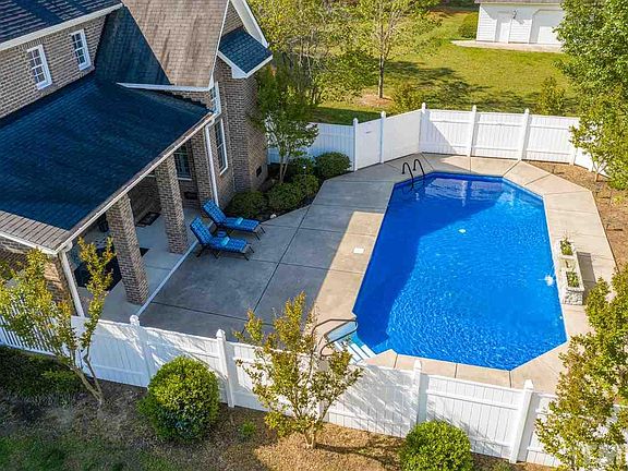 Family fun w/Inground, heated salt-water pool! RARE 2.9 Acre lot in Clayton! Lovely home features 4 car Attached Garage + detached Garage/Workshop/Studio! Solar panels! 3 gas fireplaces! HUGE Bonus Room w/fireplace! Plantation shutters & cathedral ceiling in Family room! Master Suite features spacious Bath w/jetted tub & tons of counter space! Kitchen is light & bright w/white cabinets/walk in Pantry/wall oven+Island. Large laundry. Great storage in this home! HUGE cleared yard plus privacy landscaping!