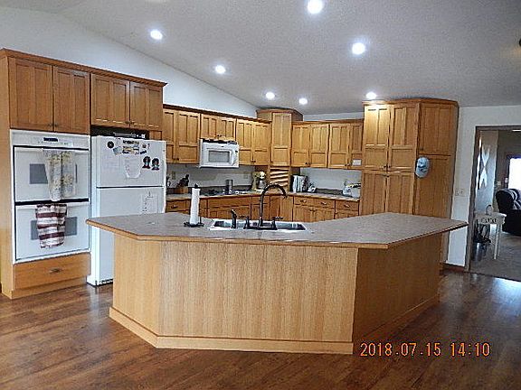 Large home, yard and great Missouri River views. 1814 sq' on the main floor & over 1700 sq' lower level finishing. Vaulted ceilings throughout main floor and kitchen has wonderful Custom quarter sawn oak cabinets and center island. Dining room adjoins kitchen and offers tons of natural light from the large eastern windows. Main floor great room has a fireplace, walk out to deck and office.