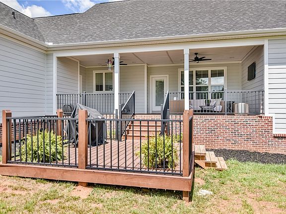 Beautiful LIKE-NEW custom 3BR/2.5BA RANCH home with approx 2140SF in an extremely peaceful, rural setting in The Bluffs at High Point (only 33 lots) near downtown Belton, SC, just 20 minutes to Anderson or 40 min to Greenville, SC! This barely-lived in home offers modern features with a spacious split bedroom floor plan. Located on a large, level .8 ACRE lot in this sweet community, you will LOVE where you live! The property features a brick, crawl space foundation (no slab!), a long and extended drive way and parking pad, a tankless hot water heater for neverending hot water, a side-load garage, architectural roof, irrigation system, plus hardiboard exterior! Did I mention the OVERSIZED porches--a true Southern wrap around front porch plus amazing covered back porch which the sellers have expanded to add a grilling deck! WOW!!! Inside, the upscale features continue with LVP flooring throughout the main living areas, a private office with barn doors, a gas log fireplace with shiplap in the vaulted great room, plus an open kitchen and dining space! This lovely kitchen comes complete with all SS appliances including a gas stove and a refrigerator, pendant lighting, and quartz countertops with massive eat-at island! You will LOVE entertaining from here! The huge walk-in utility room is conveniently located between the kitchen and the owner's suite. This owner's suite boasts a vaulted ceiling, a private bath with dual vanities, high end fixtures, private commode, freestanding soaker tub, lovely oversized tile shower, AND a super sized walk-in closet! The two secondary bedrooms share a beautiful hall bath. A drop zone plus half bath just inside from the garage add extra features also. Built by a local experience custom builder in the peaceful, walkable community.... this home is an excellent choice whereby neighbors enjoy life to its fullest! After just two years in this new home, these sellers must relocate but they will truly miss this setting! P.S. Ask about special lender financing also!