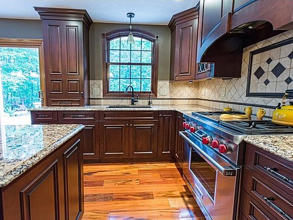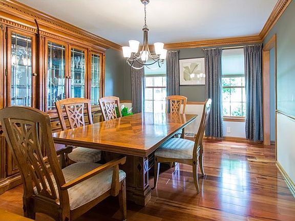 Welcome to 102 Timberlee Drive nestled in the charming Timberlee Farms community. This 5 bedroom 3.5 bath home will impress you from the moment you arrive. The custom brick exterior, professional landscaping and private nearly 1 acre, wooded home site will demand your attention at the curb. Luxurious Brazilian hardwood flooring greets you at the dramatic 2 story foyer flowing throughout the main level of the home and the second level hallway. Beautiful modern lighting and bright windows flood the home with natural sunlight. An elegant, spacious and private home office is located at the front of the home featuring French doors and large windows. An intimate and formal dining room is adjacent to the kitchen and is complimented with dentil crown molding, a chair rail and stylish lighting. A chef's DREAM kitchen with fabulous detailing is sure to strike all of your senses. Preparing meals and entertaining in this kitchen will be a pleasure with a Wolf, 4 gas burner stove with griddle, a Sub Zero refrigerator and a beverage center. Custom tile backsplash compliment the Quartz countertops, stunning Cherry cabinetry and pendent lighting. Access to the custom exterior patio, with a built-in kitchen area, is off of the kitchen's oversized eat-in area. Open to the kitchen and boasting beautiful judges paneling, dentil crown molding, a custom fireplace and a wall of windows overlooking the patio is the spacious family room. The oversized owner's suite is bright and airy featuring his and her closets, a spa-like bath with jetted tub and a vaulted ceiling. The second level features 3 spacious and bright guest bedrooms, with generous storage and sharing a dual vanity hall bath graced with a granite counter top and custom tile flooring. The finished lower level is perfect for entertaining complete with a large fifth bedroom, a full bath, a media area, a beverage center and a game room. The exterior of the home not only features a gorgeous custom entertaining area, but boasts a level, wooded homesite and a detached 2 car garage! This home features so many upgrades and custom details, you must see it to believe it.