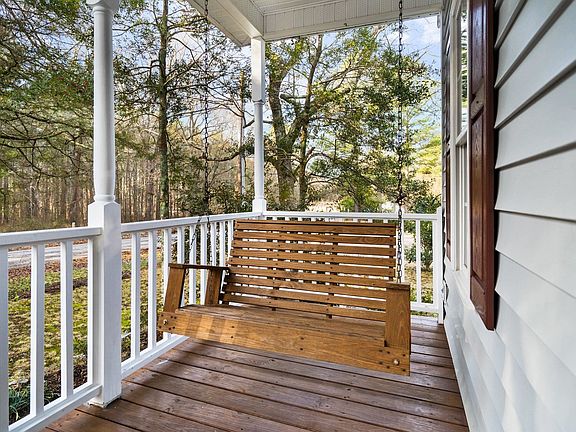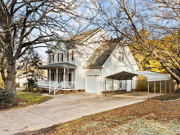 Darling home in downtown Youngsville, just minutes from downtown Wake Forest as well. New carpet and new interior paint make this cozy home move-in ready. A huge covered front porch with porch swing welcomes you to 102 Tom Williams Rd. The downstairs highlights include oversized family room with gas log fireplace, bright dining room with bay window & hardwood floors, spacious kitchen with SS appliances and a walk-in pantry, plus a laundry room with access to attached garage and a 1/2 bath. Upstairs features 3 good sized bedrooms, large bonus room, and 2 large bathrooms with tile floors. The primary bedroom includes a huge walk-in closet and spacious bathroom with 2 sinks, separate garden tub & stall shower. Don't miss the screened porch adjacent to the kitchen that overlooks the flat, grassy, fenced yard. Substantial garden area is ready for your veggie and herb gardens. Nice shed in place with covered porch area. Playset ready for little ones. Wooded area beyond the fence. Enjoy all the conveniences of living close to town without the crowded feel on neighbors everywhere you look. Welcome home!