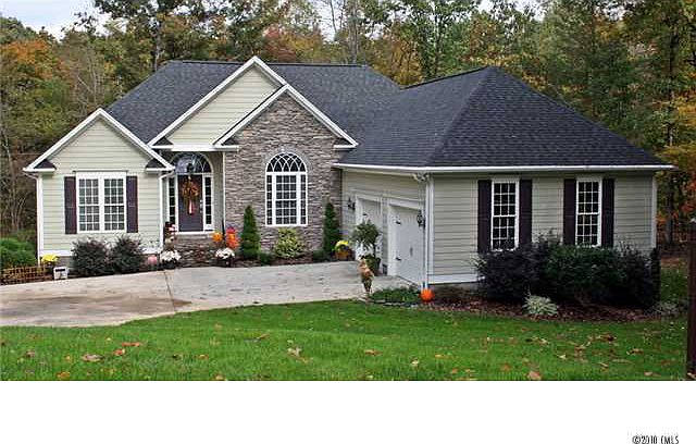 Great room has vaulted ceilings and gas log fireplace, custome cabinets w/granite countertops, upgraded stainless steel appliances, master suite has large ceramic tile shower and garden tub, split bedroom plan, full basement, rear deck on upper and patio below, contains 1 1/2 lots and 2 parcels