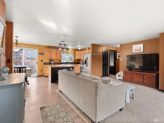 Perfect Starter! Immaculate and nicely updated 3 bedroom, 1 3/4 bath home. Spacious living room, open concept kitchen with eating bar and dining area, newer flooring, and fixtures. Step out and enjoy the fully fenced back yard with lots of room for entertaining or just relaxing on the back deck or patio after a long day. Large garage and plenty of extra parking, room for your RV & plenty of space to build a shop. Nicely kept grounds located on over 1/4 acre on a corner lot. Close to Golfing and minutes to I-5. This home is a must see.