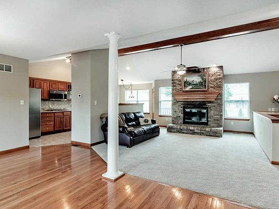 Gorgeous ranch home on 1.5 level acres in a lovely neighborhood just a few minutes from Wentzville. Enter to find NEW carpeting (2018) & fresh paint in the open living room with vaulted ceilings & brick fireplace with blower. The updated kitchen has custom cabinets, granite counters, travertine backsplash, stainless steel double wall oven & gas cooktop. Exit the breakfast room door to the updated, landscaped patio perfect for entertaining. Private master suite with a bay window, trey ceiling, walk-in closet & attached bath with dual sinks, tub & shower. Divided bedroom floorplan puts the family bedrooms & bath in their own wing. Main floor laundry with a walk-in pantry behind. Finished lower level with updated vinyl plank floors & another fireplace provides excellent living space. Cedar closet. Side-entry 3-car garage + detached HUGE oversized 2-car garage/workshop w/wood burning stove & exhaust fan perfect for craftsmen! Easy access to Hwy 61. Ft Zumwalt (North) Schools. See it today!
