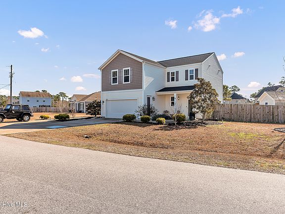 This adorable abode is nestled in the quiet and quaint community of The Preserves at Morris Landing and is just a short drive to crystal coast beaches and local entertainment! As you pull into the drive, be sure to notice how well the landscaping is groomed along with plenty of sidewalk and driveway space! As you make your way into the foyer you will be greeted with a spacious open concept floorplan cascaded with tons of natural lighting. Take note of the custom touches on the walls and throughout the home. The kitchen is a dream; with more than enough cabinet and countertop space, the perfect place to make memories over meals! Is storage space something you need, well don't worry because this home has you covered. Between the large space under the stairs, the closets, and the shed with two lofts, you wouldn't even need use the attic, which provides even more storage space! The two-car garage has been converted into the perfect space for whatever your needs are. It would make a great guest quarters since there is a half bathroom also located in this finished room. With entries from the outside, you can enjoy the comfort of your own home, and your guest can come and go as they please! As you make your way upstairs you will be greeted with a huge loft, this is perfect for an at home office, gym area, or even a second level entertainment space. Need a little rest and relaxation? Well don't fear, this master bedroom with its spa like bath will not disappoint! The other bedrooms are a great size with spacious closets. The backyard is dream, with a cozy fire-pit and a massive shed that has more than enough room to store all those outdoor tools and equipment!! It also placed a mile from Morris Landing, which is the perfect place to catch those gorgeous views of the ICW. Perfectly located to local restaurants, shopping, military bases, and short drive to Wilmington, this stunner will not last long!