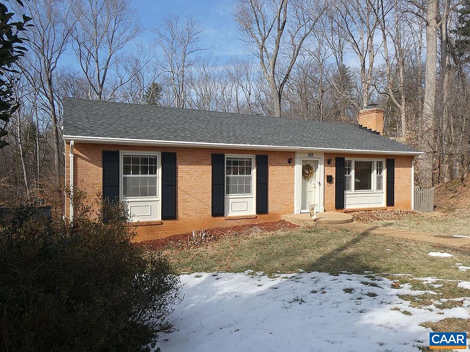 You will love the location! In an almost hidden cul-de-sac in the Frys Spring area of Charlottesville, is this suprisingly spacious mid-century brick rancher. Those sixties features we love: hardwood floors, big family room, decks, fireplace, and screened porch enhance the "move-in" condition of this home. You will enjoy the small privately located patio. The rear wooded view in the summer feels like the country. Nearby is a trail that connects to Azalea Park.