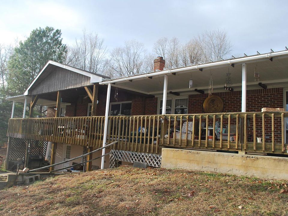 Brick home and 7.1 acres at the back of a cove on Smith Mountain Lake, good location on route 626; house and property absolutely convey AS IS; DOCK PERMIT issued for single slip covered dock; Huge double garage with walk-up storage above; several outbuildings and sheds; fruit trees, land lays well; old chimney on front of property nearest Valley Mill Rd and 626 entrance.
