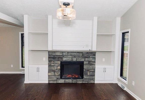 - Fireplace features: wood stove