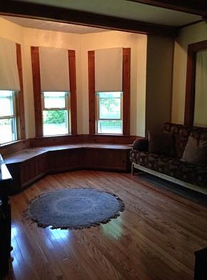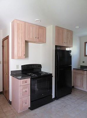Great location, walk to town yet on a quiet side street. Hardwood floors, open front porch, eat in kitchen with pantry. Free laundry in basement shared with upstairs tenant, attached 1-car garage, economical gas heat No pets, cats are pets. No smokers as this is a non smoking property. NEW KITCHEN BEING INSTALLED NOW! NOT FINISHED YET, pictures will be added as progress is made! Appliances will be black and new.