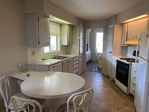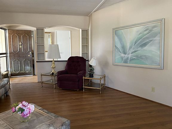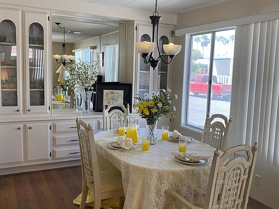 This lovely Golden West home has 2 bedroom, 2 baths, Living & Dining Room combined, Kitchen with a breakfast bar that is open to the Great Room; perfect layout for entertaining family and friends. The flooring has been updated throughout. This home is priced to sell and is being sold as is. It is ready for the new buyer to make it their own. The expansive covered patio and barbecue area host magnificent views of the surrounding mountains. The carport will accommodate two cars; there is also a storage shed. Community amenities include pools, spas, dog walks, greenbelts and Clubhouse. Conveniently located near shopping, restaurants and entertainment.