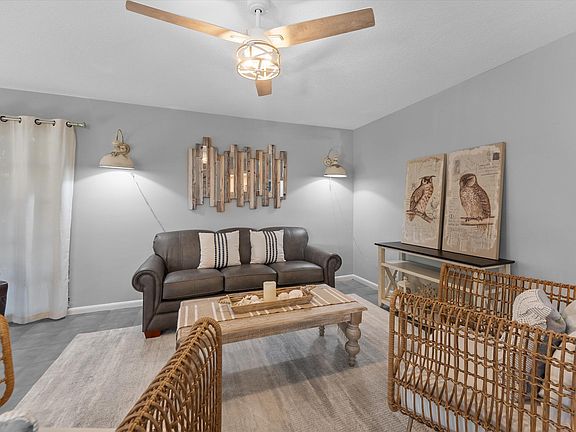Renovated Villa! Kitchen with new cabinets, quartz countertops, and tile backsplash. Freshly painted, designer light fixtures, restored tile, new LVP flooring, and more! Spacious 2 bedroom, each with huge walk-in closets, one with ensuite bathroom with new quartz countertops. The other bedroom has a full bath nearby. Open floorplan with foyer, living room, kitchen, and dining room. The cooled/heated Florida room has new LVP flooring, and includes 2 daybeds for sitting or sleeping more guests, eat-at counter, and a 2nd dining/game area. 2 car attached carport! Best of all this Villa is being sold fully furnished, including all appliances, and Home Decor! Bring your personal items and move right in!
