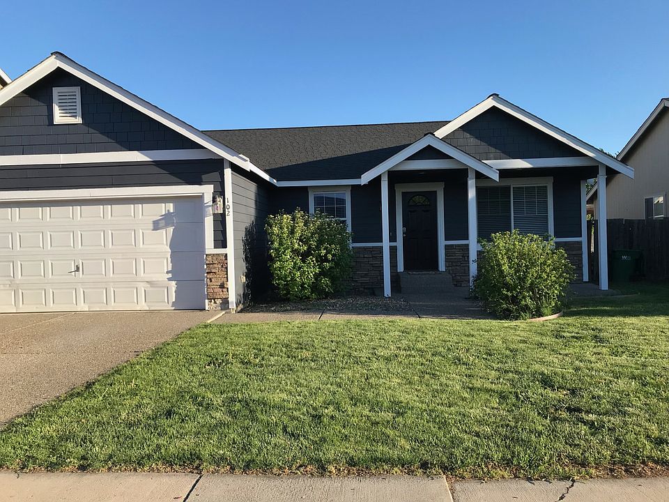 Minutes to downtown or CWU, this move in ready rambler has 4 bedrooms, 2 full bathrooms, and a 2 car garage. The large primary bedroom has a walk in closet and full bath. Three additional bedrooms. Kitchen with dishwasher, new stove/oven, built in microwave and refrigerator is open to living and dining areas. Gas fireplace, slider door to patio area in back yard. Laminate and carpet throughout. Utility room with washer and dryer. Central heat and air conditioning. Recent interior and exterior paint, and sprinkler system. Partially fenced backyard. No pets.