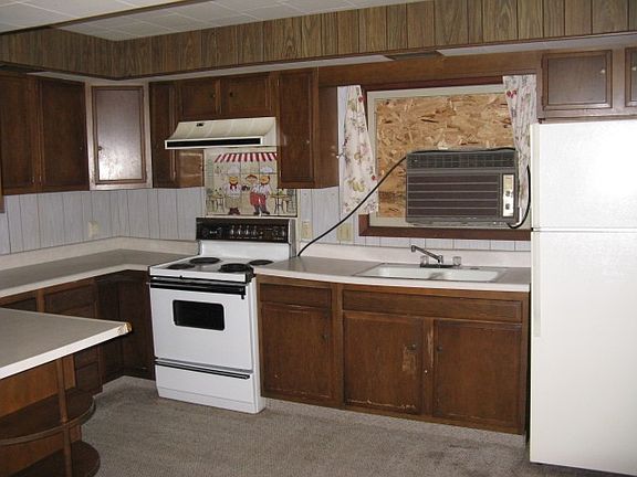 - KITCHEN: ELECTRIC RANGE, GARBAGE DISPOSAL, REFRIGERATOR, RANGE HOOD