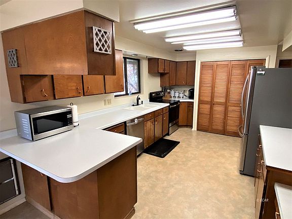 Outstanding home on the Tree Streets! 4 bedrooms, 2 bathrooms and 3191 square feet. Abundant counter space in the kitchen with built-in pantry. The refrigerator, washer and dryer are negotiable. A double-sided wood-burning fireplace adds a warm and cozy ambiance to the large living space, also enhanced with built-in bookshelves. Hardwood flooring in bedrooms. Large master bedroom includes two walk-in closets. Both bathrooms have recently been beautifully remodeled and updated. The basement level provides ample storage as well as an area that includes workbenches and shelving units that will remain with the sale of the home. Exterior enhancements include a covered patio and a large fenced backyard with sprinkler system. The roof is approximately 10 years old.