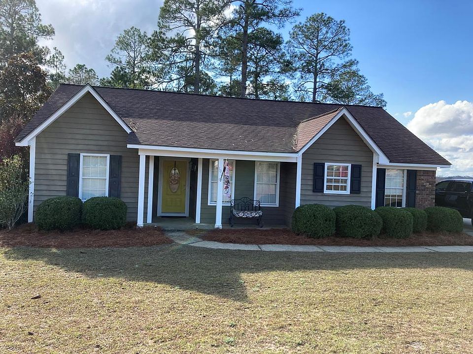 Great home in a private neighborhood with a private back yard. Large back porch for entertaining. Low maintenance brick and hardy board exterior. 1.25 acre lot with a storage shed. Laminate flooring and ceramic tile throughout the house. Living room has a fireplace and cathedral ceilings. The kitchen has all stainless appliances.