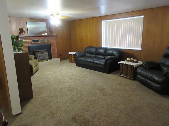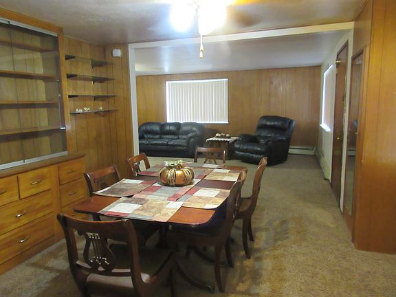 CUTE TWO BEDROOM ONE BATH HOME IN TOWN NEAR SHOPPING. Large living room with gas log fireplace, separate dining room, and a nice sized kitchen. Has a large laundry room with a pantry and the washer and dryer are included. Heated by hot water baseboard heat. Newer flooring in laundry room, kitchen, and bathroom. This home has two covered porches, a storage shed, and a car port. Yard is partially fenced and landscaped with a drip water system.