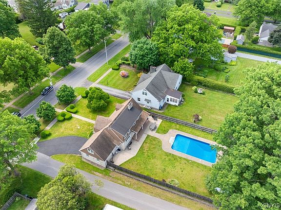 A North Rome CLASSIC! The quintessential, expanded, stone-front Cape, with all of the charm that you might expect on the inside, based on how it presents from the road. Beautiful, UPDATED hardwood floors! Updated ROOF, WINDOWS & SIDING (approx 2013!) Spray foam insulation. Main level laundry / mudroom! The updated kitchen opens to a spacious formal dining room & features a large island with granite countertops & seating for four. Updated refrigerator. Fabulous, fully fenced backyard with in-ground pool. Pool liner is under 3 years old. Great covered porch, spacious patio, & a big space-saving shed for all of the lawn tools & pool equipment. The finished basement features a family room & a kitchen area that is all currently functioning as a guest suite. Plenty of STORAGE in basement & partial attic space over the garage, conveniently accessible from inside the house. City taxes include UNMETERED water, sewer, garbage & green waste pick up! Ridge Mills Elementary. The location on this sidewalk-lined street with a beautiful canopy of mature trees cannot be beat. Seconds from Griffiss Business & Tech Park, shopping, dining, parks, etc. Don't miss out!