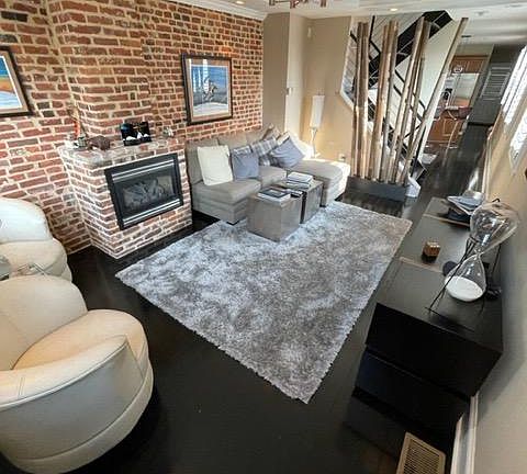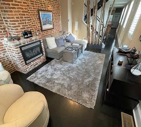 NEW PRICE---$405,000!! 4 FINISHED LEVELS!! 3RD BEDROOM POSSIBLE IN LOWER LEVEL OR ON 3RD FLOOR! TIRED OF WHITES AND GRAYS? WANT A CLASSY, SUPER SPECIAL DESIGNER LOOK UNLIKE ALL THE CURRENT RENOVATIONS? THIS EXCITING HIGH-END 3-STORY EOG WITH PARKING PAD IS JUST THE ONE FOR YOU! 3 LEVELS OF DARK BRAZILIAN CHERRY HARDWOOD FLOORS. BRAND NEW CARPET IN BASEMENT LEVEL. TRAY CEILINGS WITH CUSTOM LIGHTING. EXPOSED BRICK WALL IN LIVING ROOM WITH GAS FIREPLACE! 2 SECOND FLOOR PRIMARY BRs, ONE WITH JACUZZI TUB AND ONE WITH DUAL DESIGNER VANITIES, STEAM SHOWER AND HEATED MARBLE FLOOR! CUSTOM CENTERPIECE STAIRWAY LEADS FROM BASEMENT FAMILY ROOM ALL THE WAY TO 3RD FLOOR WET BAR AND ANOTHER FAMILY ROOM WITH FRENCH DOORS TO NEWLY INSTALLED REAR ROOF, READY FOR EASY DECK INSTALLATION! GOURMET KITCHEN WITH GRANITE AND UPGRADED SS APPLIANCES! PLANTATION SHUTTERS THROUGHOUT THIS MAGNIFICENT HOME!!