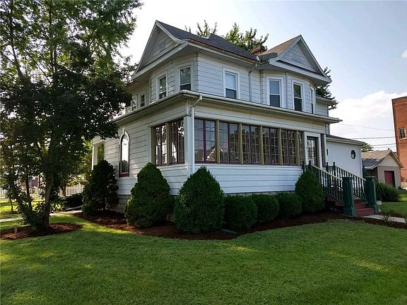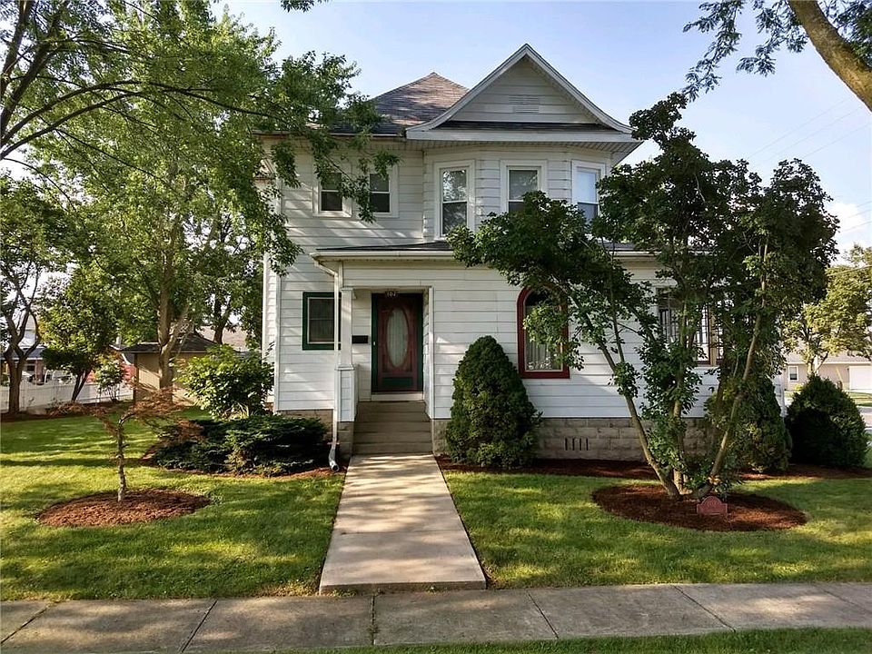 A completely restored Victorian home. Step into the foyer with an open sightline into the kitchen. Beautiful oak floors and oak banister to the second floor. To the right it a formal parlor with more oak, and built ins; all hand made by a custom woodworker. Formal dining room and library beyond. You'll be amazed by the unique and one of a kind oak and walnut trim and doors throughout. Original oak flooring. All the stained glass was handmade. Antique chandeliers. Custom oak/stained glass cabinets in the kitchen and laundry room. Ceramic tile flooring. Second floor features four large bedrooms with more original oak floors. 2 stairways. 1st floor windows were replaced in 1995. 2nd floor windows all new in 2018. Gas furnace and central air new in 1995. Average monthly gas bill $90. Completely rewired. Roof new in 1995. Whirlpool tub in the full bath. 18x44 workshop garage with 1 car in front half and man cave in the back with furnace installed in 2016.