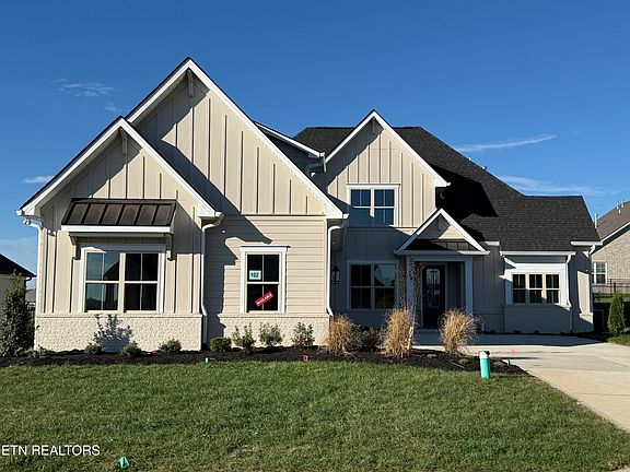 UNDER CONSTRUCTION 4 bedroom 4 ½ bath, three car garage home with over 3700 square feet, all hardwood on the home's main level, located in Farragut in the Grove at Boyd Station community, just across the street from McFee Park. The Admiral Farmhouse floor plan is one of our customers' favorite plans. A beautiful exterior with a courtyard, three-car garage, and a family-pleasing layout. Step into the Admiral, and you will immediately know you are in a very special home. To your left, you will find a formal dining room (could be a main floor office), large enough to host your favorite holiday parties with a butler's pantry located in the hall between the kitchen and dining room, with painted upper and lower cabinets, quartz countertop, beverage center and natural stone backsplash. Moving from the foyer and entering the expansive great room, casual dining area, and gourmet kitchen in one open space. The great room has a lovely, coffered ceiling, large windows to let in plenty of natural light, a gas fireplace, and a custom mantel with a natural stone surround. The large casual dining area has 3 clerestory windows to let in natural light and a 12-foot by 8-foot glass sliding door leading to the 12 x 16 covered and screened rear porch. The rear of the home faces a designated open space for the community for a very uncrowded feel. The kitchen in this home is a chef's delight, with painted cabinets to the ceiling, a 36-inch gas range, a wood vent hood, a cabinet oven, and a microwave. (All KitchenAid) The kitchen has quartz countertops, a natural stone backsplash, and a spacious pantry. The large main-level owner's suite in this home has hardwood floors and a set of triple windows with a transom above. The owner's master bath is a showstopper with a free-standing tub, a large shower with designer tile, frameless glass surround, a vanity with a double bowl, a quartz countertop, and sconce lights beside the custom mirrors. Travel up the oak tread stairs to the second floor to a hardwood hallway leading to 3 more sizeable bedrooms, each with a full bathroom with custom mirrors and quartz countertops. The second floor also has a huge bonus room perfect for the family playroom, hobby area, or media room. Please schedule your showing for this outstanding home today. You will be thrilled you did.