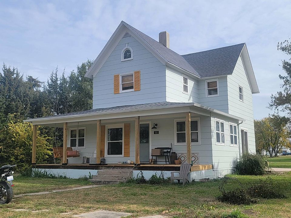 102 Walnut Street Lebanon, Kansas 66952 This 1920 home is a 1 1/2 story, three bedroom, two bath, on a corner lot. This sale includes Lots 1-5 and Lots 27-36, for a generous 1.20 Acres. The home has been recently renovated and has a unique beauty and charm. The main floor has 1,064 Sq Ft of living space. This consists of a 27'x27' Sq Ft open-concept kitchen, dining and living room. The hardwood floors and open framed ceiling contribute to the intriguing unique authenticity. The kitchen has an island for seating and food prep. The countertops are solid surface Corian. The cabinets have a double sink and dishwasher. The stove is by the island and refrigerator on the adjacent wall. The formal dining room is directly off the kitchen. A brick chimney serves as a natural division of the areas. The living/family room faces away from the kitchen and has a outdoor view through sliding doors. There is a large full bath with Luxury Vinyl, step-in shower and large vanity. A 14'x7' laundry room is located to one side of the main floor and a 14'x7' office is off the other side of the main floor. The second floor has three bedrooms and the second bathroom. The floors are refinished hardwood, and walls and ceilings are new Sheetrock. Master Bedroom is 18'x13.5', with a complete wall of closets and cabinets. There is ample room for a sitting area. The second bedroom is 15.5'x13.5' with a closet. The third bedroom is 12.5'x9.5' and has a wall of closets and shelves to ceiling height. The full bathroom has tile, free standing sink and tub/shower. Central Heat & AC Exterior access unfinished partial utility basement Property Tax: $998.60 Lot Taxes: $94.27 LISTING PRICE: $189,900