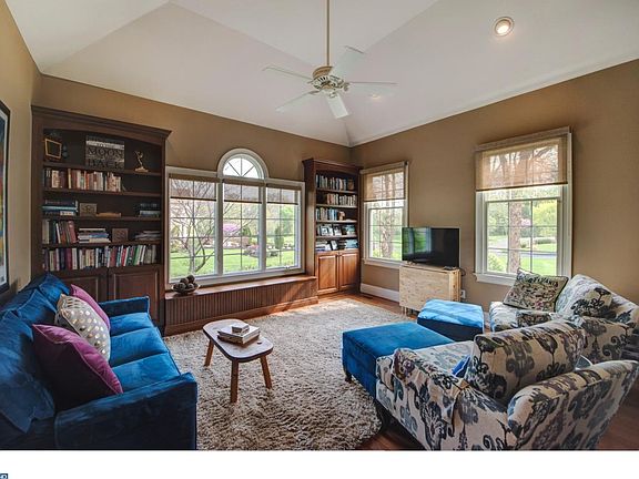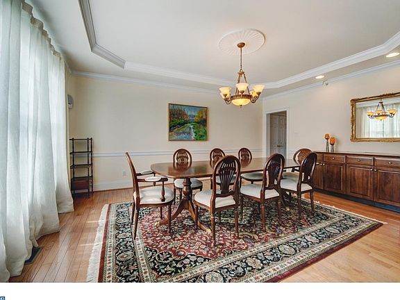 This Spacious, bright and updated 5 Bedroom, 3.1 Bath Home in the wonderful neighborhood, Jericho Valley in Newtown is move in ready. A light filled 2 story entry with hardwood floors and turned staircase opens to the formal Living Room on the right with crown molding and chair rail and to the formal Dining Room on the left with tray ceiling and built in buffet. The Gourmet Kitchen is professionally designed and upgraded with custom maple cabinets, Miele dishwasher, granite counters, backsplash and large eat-in island, 6 burner gas cooktop, built-in fridge and open to the 2 story Breakfast room. The large Family Room has a gas fireplace and leads to the private office with French doors and to the step down conservatory with vaulted ceiling, window seat and built-ins. The Master suite offers a sitting room, currently used for exercise, a high vaulted ceiling, 2 walk in closets and a luxurious Bath with 2 sinks, Jacuzzi tub and tiled shower. There are 4 additional Bedrooms all with large closets and 2 Baths, the 5th Bedroom is so spacious and convenient to the secondary Bedrooms that it can easily serve as a Playroom or Bonus Space. Other highlights: 3 Car Garage, professionally landscaped yard including a waterfall in the back, Sun room with walls of windows, sprinkler system, speakers system in family, dining rooms and outdoor patio and Laundry/Mud room with granite topped custom cabinets.