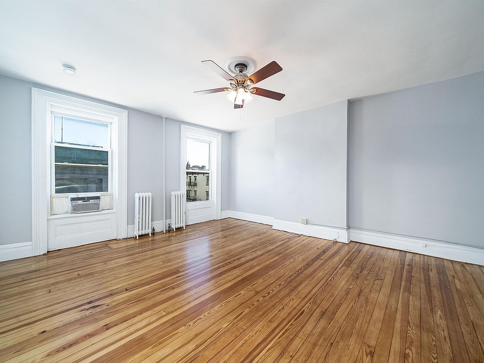 Move right into this 3 Bedroom/ 1 Bathroom condo in Downtown Hoboken just 4 blocks from the PATH! Very spacious layout, with a huge Living Room, 3 good sized bedrooms, tin backsplash in Kitchen, hardwood floors throughout, 8ft windows, french doors, ceiling fans, large storage space and coin-operated washer/dryer in basement. Heat & Hot Water included.