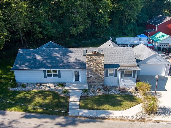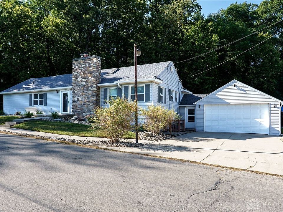 Welcome to this spacious ranch-style home offering 3 Bedrooms (or 4) 2 Full Baths, and the charm of country living with modern updates throughout. Nestled on a beautiful lot with a wooded view this property combines privacy and convenience with easy access to State Route 42, US-35 and US-68. Step inside to an inviting Living Room featuring large skylights and a cozy wood-burning fireplace with insert. The open-concept Kitchen includes a breakfast bar, Pantry and comes fully equipped with appliances- Range, Refrigerator, Microwave, Water Softener, Washer, and Dryer- all included. Enjoy relaxing in the enclosed porch with its rustic wood walls and stone floor, or head out to the freshly stained Deck overlooking the serene, fenced backyard. The full, semi-finished walkout basement expands your living space with a finished room perfect for a 4th Bedroom, Office or Entertainment Area, complete with an attached Full Bathroom. A spacious unfinished section offers endless possibilities-storage, workshop or hobby space- with a walkout access to the backyard. Recent updates include a Roof (2024) AC (2023) brand new gas line for the Generator (2025). Outside, a large storage shed with windows offers flexibility as a workshop or even a greenhouse. This property truly has it all.....country charm, modern conveniences, and plenty of room to make it your own!