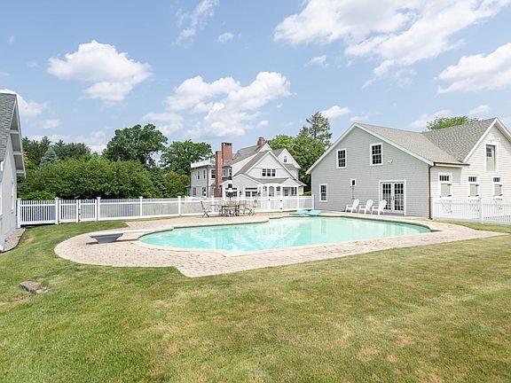 Meadow estate in the heart of Weston with restored/expanded Queen Anne Victorian circa 1896, 3 large outbuildings/barns and a pool. Level, sunny 1.67-acre parcel surrounded by open land and mature plantings, providing tasteful privacy in an unparalleled location. Formal areas blend with casual family living spaces in this 6-bedroom home. Large kitchen/family room with pantry and eat-in area. Gracious dining and music rooms with fireplaces. Mahogany library with built-in reading areas. Conservatory features barreled ceiling, garden planters, and copper sink. Primary suite with cozy tiled fireplace, walk-in dressing area/closet, and bathroom with soaking tub. Flex room can be exercise or bedroom. Two additional bedrooms and bathroom with soaking tub complete 2nd floor. Walk-up 3rd floor with two bedrooms, and full bath with clawfoot tub. Two barns with second floor, and basement could be used for cars, horses, or sports. 3rd barn for more parking or art studio. Top rated Weston schools.