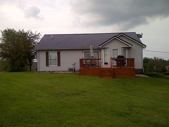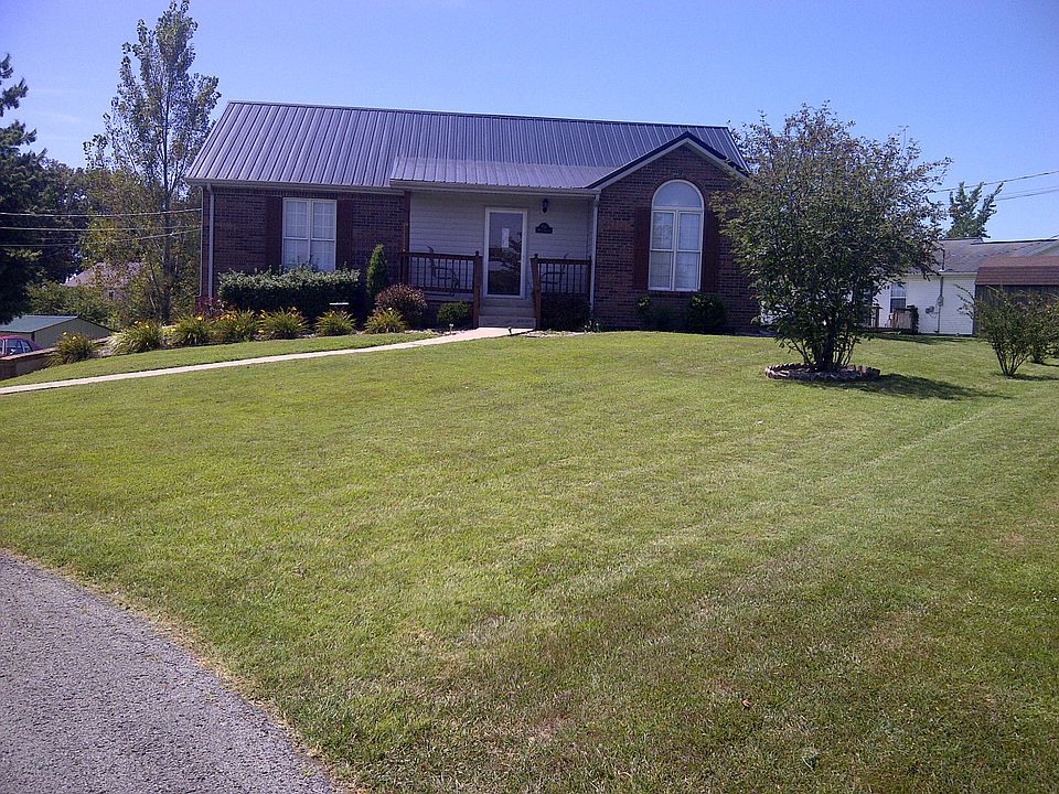 PLEASE CALL (270) 326-7579 to schedule an appointment. Beautiful single family ranch style home nestled at the top of the cul-de-sac in the quiet Whispering Meadows Subdivision. Close to Green River Lake and only minutes from town. The living room has vaulted ceilings with a ceiling fan and french doors leading out to a nice size deck that has been recently stained and repaired this year. The driveway was resealed this year. Eat in kitchen with oak cabinetry, a beautiful garden window that looks out to the deck/backyard and a ceiling fan. The refrigerator, electric range and dishwasher are all staying. The master bedroom has a full size bathroom, walk in closet and a ceiling fan. There are two other bedrooms on the main floor, one with vaulted ceilings, walk in closet, half moon window and a ceiling fan. There is another full size bathroom between the two spare bedrooms. All of the blinds and curtains stay. There are two more bedrooms in the finished basement, one with built in shelving. There is a good size living area and a third full size bathroom in the basement. The laundry room is in the basement. Most of the flooring in the basement is pergo, however, in the bathroom there is ceramic tile, in the hallway and laundry room the flooring is stamped cement. Beautiful crown molding throughout the house. There are textured ceilings throughout the whole main floor. The living area and hallway in the basement has a drop ceiling. The rest of the basement has textured ceilings. The floor in the 1 car attached garage has been sealed with epoxy this year. A very nice size yard with established trees and shrubbery. The house has a metal roof that was put on in 2012. 1,464 square foot on the main floor. There is another 1,200 square foot in the finished basement. The house was built in 1998. PLEASE CALL (270) 326-7579 to schedule an appointment.