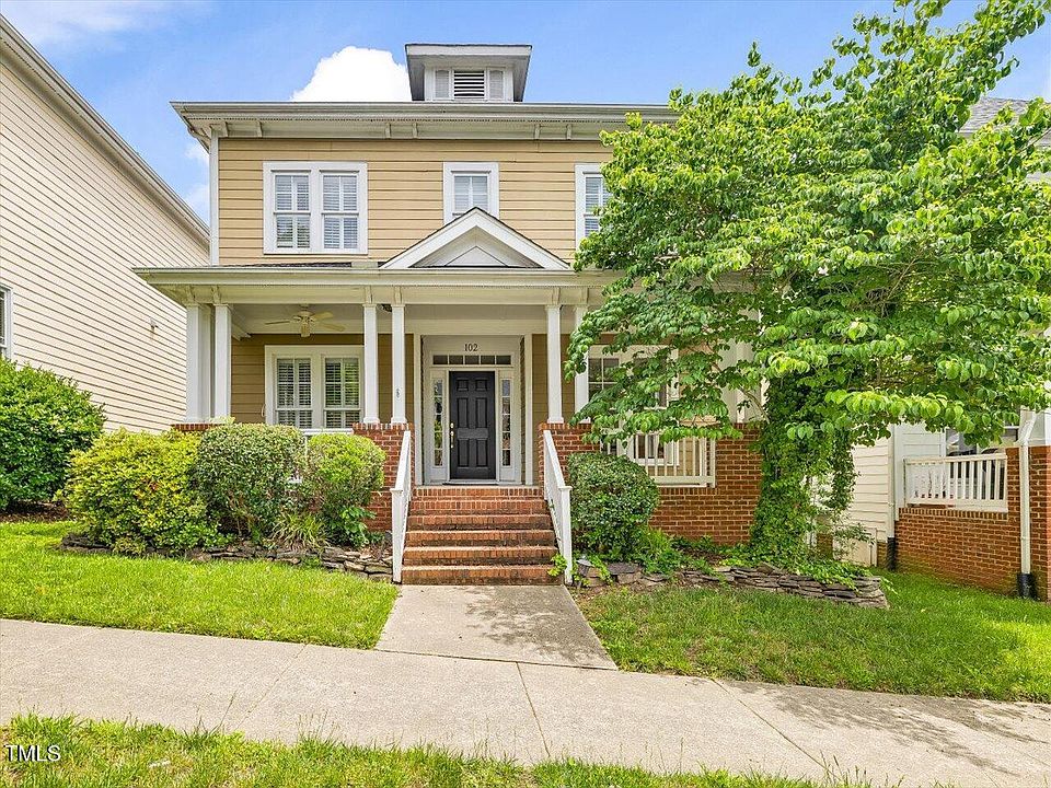 Great Value in Southern Village! NEW Price. NEW Updates. Don't miss your chance to buy in this highly coveted walkable community with tons of amenities! Brand new carpet and interior paint. New roof 2021, New second floor HVAC 2024, New first floor gas pack 2019, New Samsung SS double oven with gas range 2023, New SS refrigerator 2022. HW floors throughout first floor. Formal dining room with chair rail. Family room with gas fireplace. First floor office with french doors and built-in bookshelves that open up to a Murphy bed if a first floor guest room is needed! Kitchen with SS appliances, granite counters, tile backsplash, Bosch dishwasher, built-in microwave, plenty of counterspace, bar seating, pantry. Open first floor living space overlooks large back deck, fenced yard, and detached 2-car garage. Upstairs includes the primary BR, ensuite BA with 2 separate vanities, garden tub, separate shower, large walk-in closet. Jack 'n Jill secondary bedrooms/full bath. Laundry room with w/d that convey. Walk to top Chapel Hill Schools! Walk to pool, tennis, soccer fields, parks, playgrounds, Market St. restaurants, coffee, pharmacy, gym, Lumina movie theater, movies/music/events on the lawn. On the free busline, park 'n ride lot, walk to Southern Community Park, dog park, disc golf, and more!