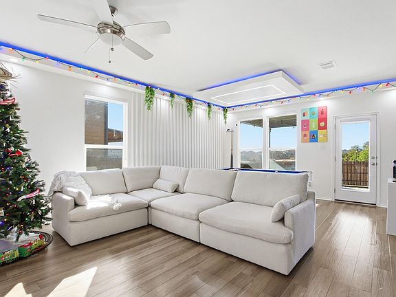 Modern, nearly-new home offering exceptional indoor outdoor living. The open-concept layout features a gourmet kitchen with stainless steel appliances, a large island, and a striking custom wine wall. The covered patio creates a true outdoor extension of the living space with a built-in grill and a fireplace/media wall ideal for year-round entertaining. The private bedroom layout includes a spacious primary suite with dual-sink vanity and walk-in shower, plus two additional flexible bedrooms well suited for various uses. Additional features include solar panels, a fully fenced backyard, and a dedicated laundry room with washer and dryer included. Convenient access to Hwy 290, local dining, and emerging development corridors. Washer, dryer, refrigerator, and outdoor grill included.