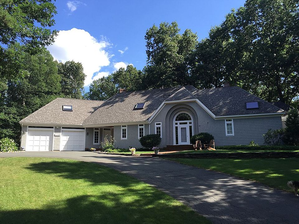 Nestled on 1.51 acres in a private, unique location in Amherst Woods is this stunning Contemporary Home. Inviting and impressive the spacious floor plan includes two Master bedroom suites, 1st floor and 2nd floor, a gorgeous sunken living room/dining room combination with a commanding fireplace and built-ins, screened porch, and spa room. Partially finished basement boasts a large rec room - perfect for a growing family. Second floor study includes beautiful cherry cabinets, bookshelves and skylight. Architecturally designed plan boasts light, bright rooms with attention to detail and style - a perfect Home for entertaining and casual family living. Sweeping circular drive, stone wall, decks, arbor, brick patio and walk make this captivating property one to remember! Meticulous! Matchless! Memorable!