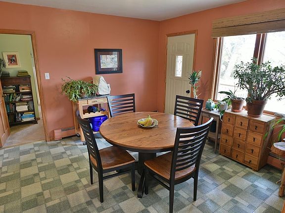 Absolutely charming two bedrm home with a three car garage, eight wooded acres, and a pretty little creek! Nice entry area as you walk into the home. Warm open feel inside with a large kitchen and dining area, and a welcoming living rm with natural lighting and a woodstove. Two bedrms and a full bathrm round out the main level space. The basement has a sauna, and plenty more space to use as you want. New top quality shingles on the roof and and garage, spray foam insulation in the attic. Native landscaping surrounds the home with lush and varied textures and blooms. Some of the yard and a garden is fenced to keep pets in and deer out. Lastly, the woods here are a rare and wonderful find this close to town, with plenty of maples to make your own maple syrup!