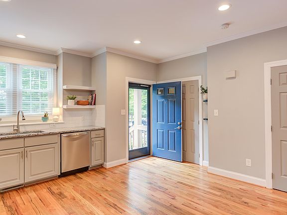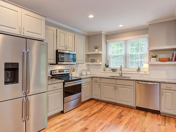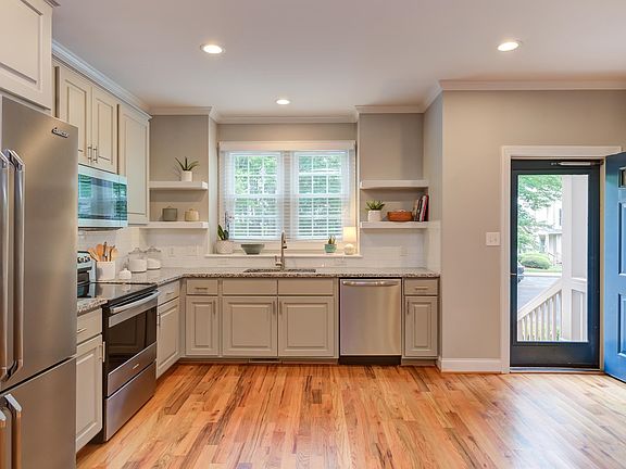 Oh my goodness! This is the one you have been waiting for! This gorgeous townhome has been beautifully updated with REAL, site-finished hardwood floors throughout. Stunning kitchen remodel with custom cabinets, stainless steel, granite and floating shelves. All 3 baths have new custom cabinets and granite tops, and the CUTEST penny-tiled floors. Smooth ceilings down. Updated light fixtures. Open, modern floorplan. New windows 2019. Private back yard with wooded border. All this nestled in the heart of Cary. Only 3 miles to downtown Cary and SAS. 2 miles to Park West Shopping center where you will find shopping, restaurants and multiple movie theatres. You just can't beat the location. Community pool has open membership (separate from HOA fee) 210 Home Warranty included. Washer, dryer, refrigerator convey.