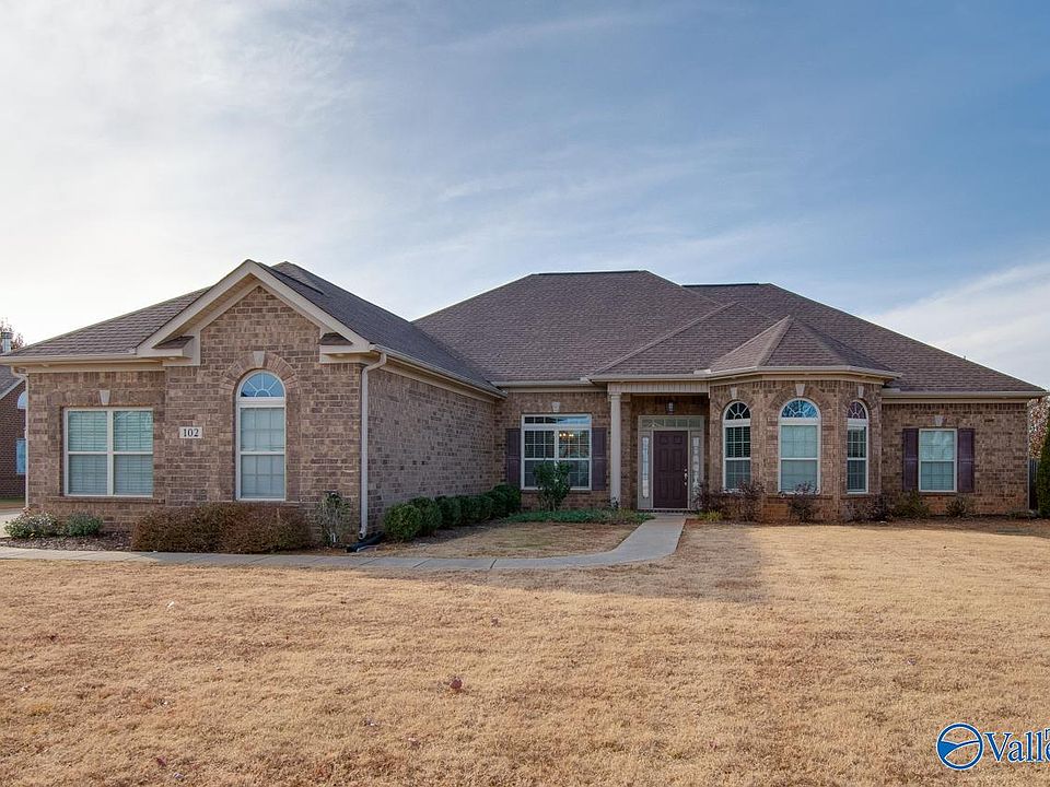 This custom built, full brick, single story home is only 6 years young and features 4 bedrooms, an office and 3.5 baths. Beautiful wood floors throughout main living area, freshly painted, granite countertops, secluded master suite, large Great Room with fireplace, split floor plan, wainscotting, large back yard and so much more! The large kitchen features an Island, gas stove, lots of cupboard and counter space, pantry, crown molding and recessed lighting. Master bath features glass shower, soaking tub, double vanity and walk in closet. Conveniently located to all Madison and Huntsville has to offer. Home is priced to sell and can close fast.