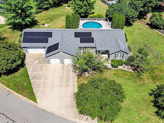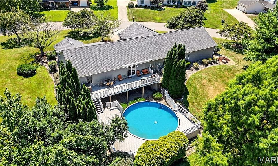 Ofallon Schools, New roof, siding & shutters, Solar, 1 acre. This fabulous family home offers 4 bedrooms (all generously sized with lighted closets), 4 baths plus a huge 623 sq ft bonus space off the garage for endless possibilities. The main level is open floor plan with gas fireplace and sliding doors leading to an expansive, composite deck and pool area. The custom kitchen has oak cabinetry, Quartz Counters, Island seating & Stainless appliances. The master bedroom suite, a 2nd bedroom and a bathroom complete the main level. The lower level features large family room with entertainment center and sliding doors to a walk-out patio. 2 more bedrooms, a bonus room (could be office, non-compliant 5th bedroom, gym or what suites your needs), full bath & laundry complete the lower level. For the multi-car family or the car enthusiasts' the garages are a dream w/ tandem parking for 6 cars boat/camper etc. The huge bonus space off the garage with private entrance, kitchen, 1/2 bath & separate heat/cooling could be additional living quarters, home business, gym, entertainment space etc. A back yard 12 x 19 shed provides additional storage. The yard with mature trees is nicely landscaped; just a beautiful property. Solar panels will be paid in full by seller, the electric bill runs about $21/month, propane tank to fill as needed. Generator for peace of mind. HVAC 2015. Above ground pool is saltwater and comes with equipment. About 15 minutes to SAFB and Hospitals.