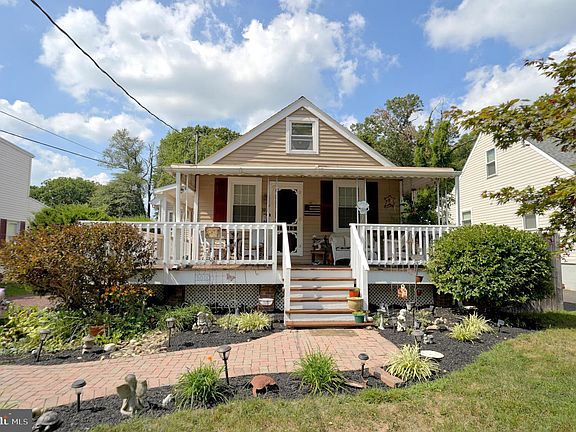 Spacious expanded cape cod with 2,291 square feet of living space--this home is much larger than it appears from the outside. A beautiful brick paver driveway and paver walkway, and a charming front wrap-around porch, welcome you to this wonderful home. The first level features a spacious open-concept layout beginning with the foyer which is connected to the second bedroom with a hallway full bath, great room, kitchen, dining and living area, as well as the laundry room and Primary bedroom. The kitchen has an abundance of storage space, a moveable center island with bar stools (hardwood under the island) a large pantry and a ceiling fan. The Primary bedroom features oak flooring, a ceiling fan, a large walk-in closet and an en-suite bathroom. With two sets of staircases on both ends of the home, the second floor features an oversized third bedroom connected to an additional bonus living space. The addition and the majority of the home was built in 2008, including a full unfinished basement, that could be finished.. New furnace 2016, natural gas heating. The sizable partially fenced backyard backs to preserved space and has a detached enclosed multi-use space/workshop with electricity and an additional shed for storage. Owners have a clear Ewing Township Certificate of Occupancy