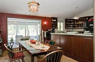Sophisticated Contemporary with master bedroom addition featuring a dressing room, fireplace & generous closets. Second bedroom with private bath. Improvements include kitchen with stainless steel appliances, low E double pane windows & repaved driveway. Living room with fireplace & cathedral ceiling opens to the dining area. A screened porch overlooks the in-ground pool. Lower level playroom. 4 bedroom septic installed in 2005. Underground utilities.