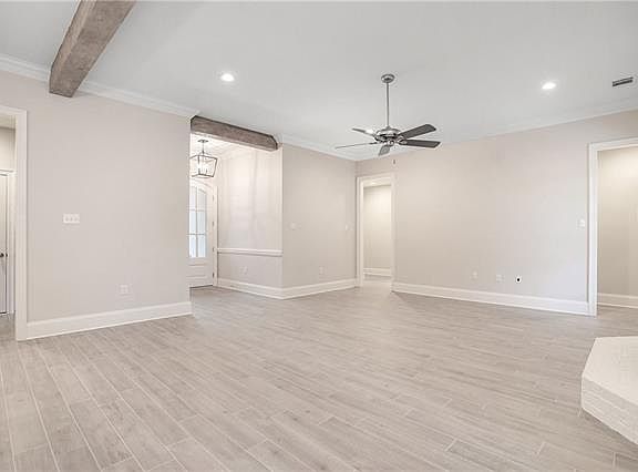 New home by GMI Const in The Forest of Guste Island! This gorgeous home is situated on a corner lot and features 4 bdrms/2 ba; wood tile flooring; exposed wood beams in living areas; beautiful kit with Quartz countertops & contrasting island; painted brick FP in den with shiplap over beam mantle; pediments over windows in den & dining; mstr with tray ceiling; mudroom area; brick covered patio; fenced yard that backs to greenspace. Flood zone C; great sch dist; subd jr Olympic size pool & clubhouse.