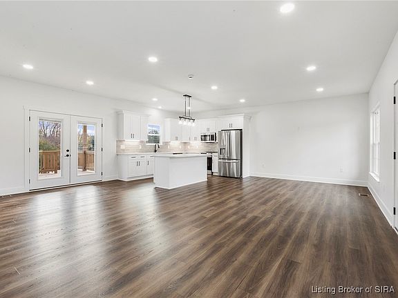 Welcome to your dream farmhouse style home, sitting on 1.4 scenic acres in the peaceful countryside of Otisco, Indiana. This stunning new construction combines rustic charm with modern amenities in a thoughtfully designed open layout. The heart of the home is a gorgeous kitchen featuring a large island, quartz countertops, and stainless steel appliances, making it perfect for gatherings and daily enjoyment. The first-floor main suite provides a luxurious private retreat, while upstairs, a versatile bonus room awaits. The full walkout basement expands the living space, offering two additional bedrooms, a full bath, a laundry room, a spacious storage area, and a cozy family room—ideal for relaxing or entertaining. With ample room to enjoy indoor and outdoor living, this home offers the perfect blend of country serenity and contemporary comfort. Don’t miss the chance to make this exceptional property yours!