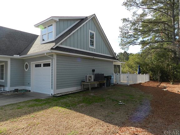 Meticulously well-maintained home! Spacious open living area with vaulted ceilings and a propane gas fireplace with tile surround. There is luxury vinyl plank tile flooring in main areas with ceramic tile in baths and laundry/utility area. The access to the screened porch is gained through the living room slider and is so convenient for outdoor dining. Access is also gained through the laundry/mud room, making letting the dog out into the fenced-in backyard such a breeze from either door. Note-worthy features of this 1,730 heated sq. ft. home include an open living area with vaulted ceilings, ship-lap accent walls, built-in shelving, expansive kitchen with large quartz island, tile backsplash and stainless steel appliances, custom cabinetry, dining area light-rail, crown molding, and primary en suite with walk-in closet and lovely tile shower with glass door. The den/office/bedroom across from the kitchen offers many options to suit your lifestyle, complete with attractive and functional barn doors. The FROG (Family Room Over Garage) allows more room to spread out and entertain or work from home. The walk-in attic is very spacious for storage needs. Once back downstairs, head down the short hallway that has a large pantry closet just before entering the one-car garage that also has a storage closet. With the exception of the FROG, this is a very friendly and practical one (ground) level living! The gated community of Waterside Villages of Currituck is located in the heart of Grandy, near golf courses, restaurants and shopping. Live close to the OBX beaches without the higher costs. Enjoy the association amenities of swimming pool, basketball court, boat dock with boat ramp with shallow sound access, community pier and picnic pavilion.