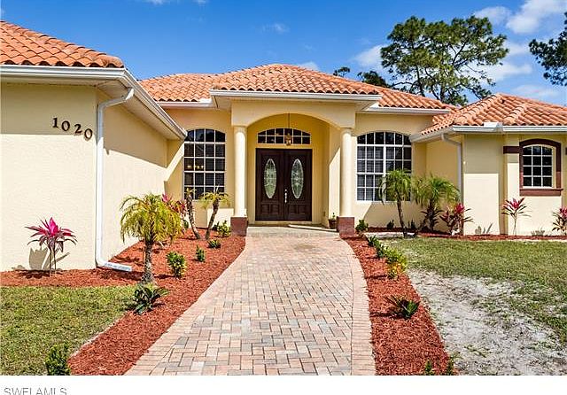 !!! Huge Price Reduction!!! Elegant custom estate home in Golden Gate Estate. This charming Florida home with spacious split open floor plan has a lot to offer. Home features 4-bedroom + den, 3-bath, 2-car garage in 3417 sq. ft. total area with 2511 sq. ft. living area on cleared 2.73 acre lot. This home is close to 951 and shopping. Gorgeous Master Suite and Master Bath with jetted tub, walk through shower, walking closet, his & her vanities. Tile through out the home with beautiful Travertine tile everywhere except bedrooms. Custom hardwood front entry door. New paint, New high-efficiency variable speed A/C, New Whole House RO system. New driveway. New tiles in Lanai & Garage. This move-in ready, completely updated, light and bright home combines quality craftsmanship and charm, and features volume ceilings. Kitchen features granite counter tops with New high-end BOSCH Cooking range, Dishwasher & Microwave and breakfast bar. Beautiful breakfast nook area with breathtaking view to the backyard. A rare find in this price range and will not last. A MUST SEE! 4/12/2016: New water heater installed. Truck load of sod is installed in the front and side with added sprinkler system.