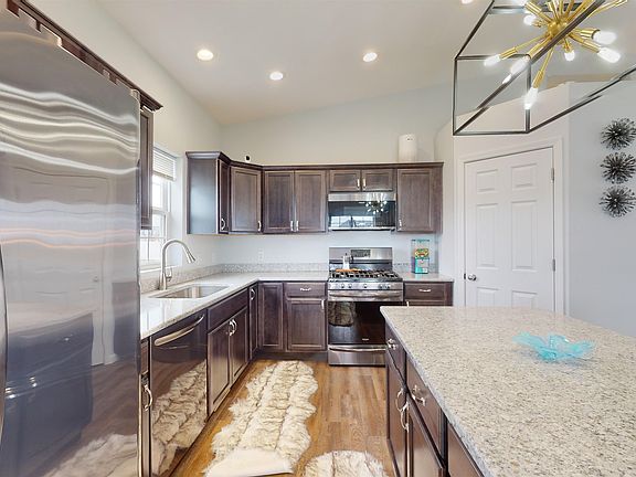Stonebridge Stunner! This home has the look you’ve been wanting and the spaces you’re needing with four bedrooms, three bathrooms, and great gathering spaces! On the main floor, the first thing to catch your eye will be the kitchen with stainless steel appliances, quartz counter tops, and classy light fixture over the large island. The kitchen is open to the living and dining area complete with a sliding door that leads out to a 12' x 10' maintenance free deck. The master bedroom is located on the upper level complete with walk in closet and en suite bath boasting a quartz vanity and glass shower door. There also are two additional bedrooms and a full bath located on the upper level. In the lower level you’ll find a 2nd gathering space,  4th egress bedroom, a full bath, and laundry room with great storage. The oversized two stall garage is 21’6” x 30’ and loaded.  Sheet rocked, insulated, gas heat, hot and cold water and floor drains. All this sits on one of the best lots in the development, adjacent to a walking trail you’ll have plenty of room to spread and enjoy any outdoor activities. Get it before its gone, call to set up your private showing today!