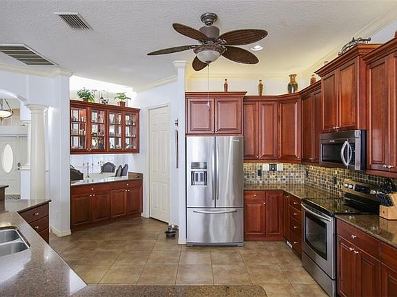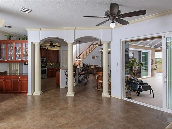 Welcome home to this 3 bed, 3 bath pool home on 10+ acres in Myakka City, Florida. Once you enter through the gates, you will be amazed at this beautiful home surrounded by over 150 fruit bearing trees and landscaping. Once inside, the kitchen boasts gorgeous granite counter tops, hardwood cabinets, tile back splash and stainless steel appliances. There's a breakfast bar and a formal separate dining room. The living room is very open with a gas burning fireplace and access through the sliding glass doors onto the pool area. All sliding glass doors are a Cat 4 Hurricane grade. From the living room you can venture to the second floor loft with a balcony to enjoy the incredible sunrises and sunsets. There is also a full bath. The master bedroom is located downstairs with walk-in closets, access to the pool and an en suite bath. The master bath has a Jacuzzi tub, separate walk through shower with dual heads, dual sinks and a built in vanity. The 2nd and 3rd bedrooms are across the home and share a full bath. Enjoy cooking outside in the outdoor kitchen, sitting area and fire pit. The property is fenced with paddocks, 2 ponds, pole barn, several raised beds with irrigation, electric throughout property and a dog run/pen. 3 new A/C units, installed 2016 and 2017, new roof 2017, reverse osmosis water filtration, intercom, surround sound, coffered ceilings, crown molding and solar panels to assist with electricity. Bring your horses! If you want peace and tranquility, this is the home!