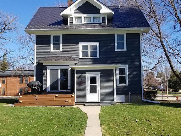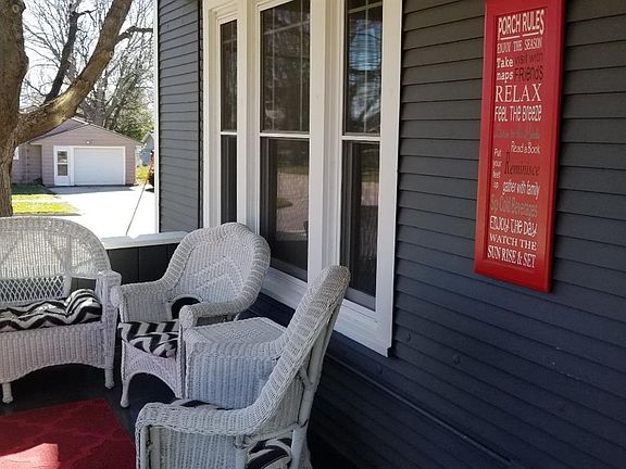 Just listed - Set your property dreams to view a beautiful two story 4 bedroom home - with one full bath and 2 half baths. New windows, newer steel roof, hard wood floors and prestige care are all part of this package. Coming up the front steps, you walk onto an opened front porch which accommodates ample seating. Two ceiling fans grace the covered roof to keep the warm summer air moving. There is an attached sunshade for the porch as well. Step from the porch, and enter a formal dining area. This includes a built in china hutch and a side bench for seating and storage located below a beautiful sunny west window. Going past the oak colonnades, reveals the large family living area, next is another room to be used as an office or den. There is a half bath powder room on this level as well. Entering the kitchen, you will see the beautiful oak missionary cabinetry and modern back splash. Updated counter tops, sink & faucets along with a built in eat at bar. This bar includes additional storage with pull out drawers. A walk off patio with sliding glass door are seen from the kitchen. A mudroom porch is located off the kitchen for access to the back yard as well. Walking down into the basement, the first room you will see is the laundry area which is large and provides plenty of storage. Across from the laundry room is a half bath. Walking a few steps and enter the entertaining area for family and friends. A built in wet bar with all of the atmosphere of a friendly local pub. Lighting and add ins provide finishing touches to this area. Plenty of sitting and back desk area as well for a quiet working area if need be. Utility closet is well thought out for the heating, cooling & mechanics of the home. This home's city sewer and water line have been recently replaced. The unattached single stall garage is clean and includes a garage door opener. A utility shed is near the garage as well. Seller has asked for 24 hour notice