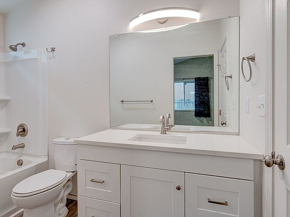 Stunning 2 bed 1 bath cottage style home with a fully fenced back yard! Oversized windows, Vaulted ceilings,vinyl flooring, Shaker cabinets, quartz countertops, SS appliances w/ Mini-split heat pump/AC, including a 4 season insulation package. Enjoy low maintenance living close in Castle Rock for convenience. This newly constructed home offers an open concept layout drenched in natural light and sleek finishes.
