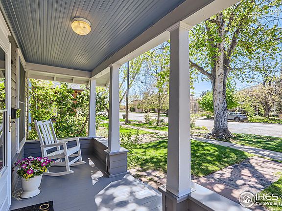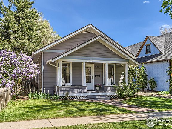 Discover the charm of this "Arts and Crafts" style bungalow nestled in the heart of Old Town Longmont. Teeming with character, this sweet two-bedroom, one-bath home showcases classic architecture including an adorable Craftsman front porch with tapered balusters, partial wall enclosure, beadboard ceiling, and gabled roof. As you enter, you'll be treated to a bright and spacious interior featuring 10 ft. ceilings, tall windows with original wood moldings, refinished hardwood floors, an authentic colonnade with a glass-doored bookcase and fold-down desk between the living and dining rooms. Two large bedrooms, one with elegant glass double doors, share an equally spacious bath with the original clawfoot tub and shower. The kitchen and laundry/mud room feature built-in pantry cabinets and lovely views to the backyard. Situated on a spacious private lot, this home offers ample opportunities for expansion, with potential for a garage/studio and gardens and entertainment spaces. Recent updates include a new Class IV roof, storm door, rear door, interior and exterior paint, hot water heater, and attic and wall insulation. All appliances are included for your convenience. Enjoy the tranquility of this quiet street, close to Roosevelt Park and all the amenities of downtown Longmont, including the RTD bus hub, popular eateries, shops, schools, parks, and the public library. Don't miss the chance to see it for yourself at our OPEN HOUSE on Saturday from 10 a.m. to 1 p.m.